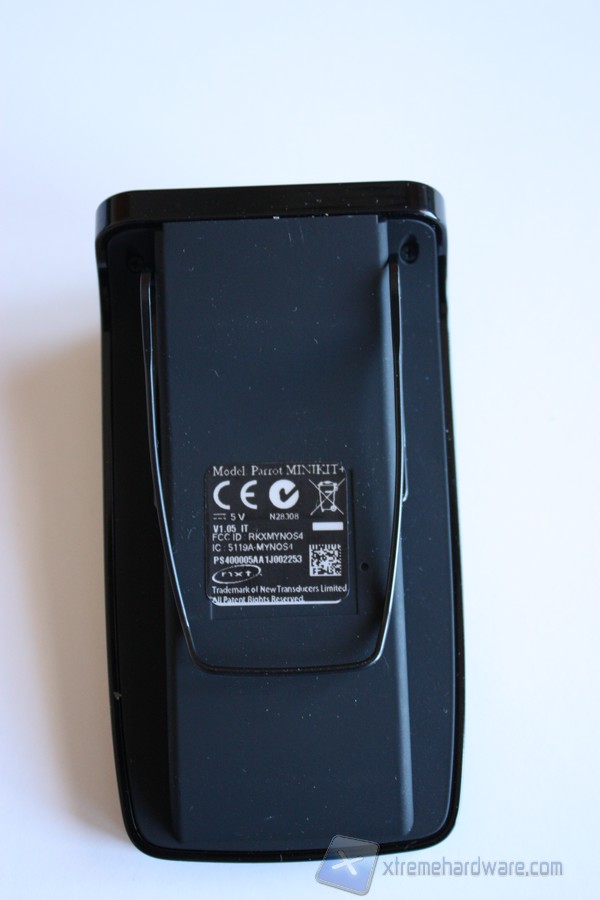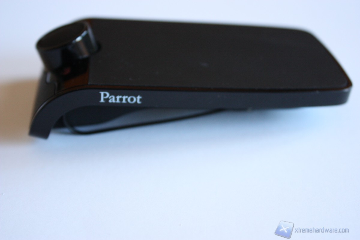 La parte inferiore del Parrot è dotata di una pinza che ci permetterà di agganciarlo al parasole (se previsto dalla vostra auto) o di utilizzare la molla in dotazione per i modelli che non permettono un fissaggio diretto. Potremo agganciare il Parrot MINIKIT+ non solo al parasole (posto ideale per un’auto) ma anche direttamente sui nostri indumenti, ad esempio sulla cintura, in modo da poterlo utilizzare in casa o durante attività lavorative.