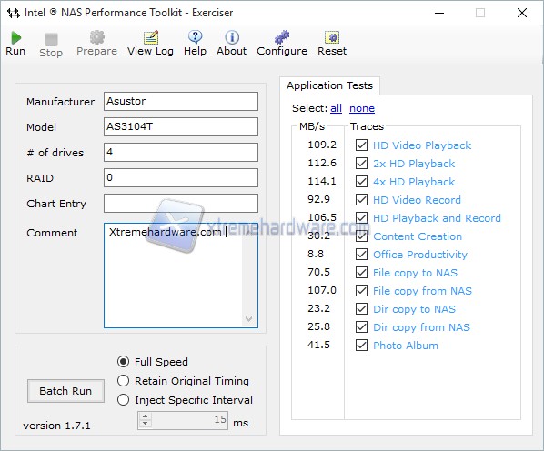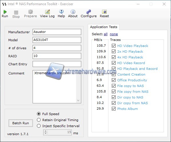 Asustor AS3104T: Intel NAS Performance Toolkit v 1.7.1